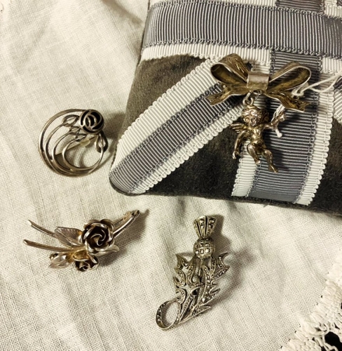 シルバージュエリーを追加しております。今回はエレガントなヴィンテージブローチを4点。